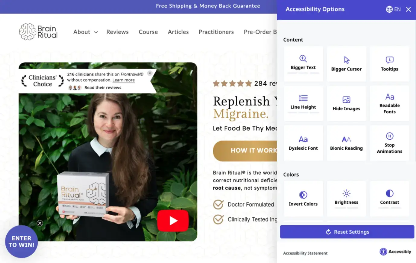 If you want to take your prospects’ UX to the next level, giving them control over how your site appears with tools like UserWay — similar to Brain Ritual — can be a great strategy.
