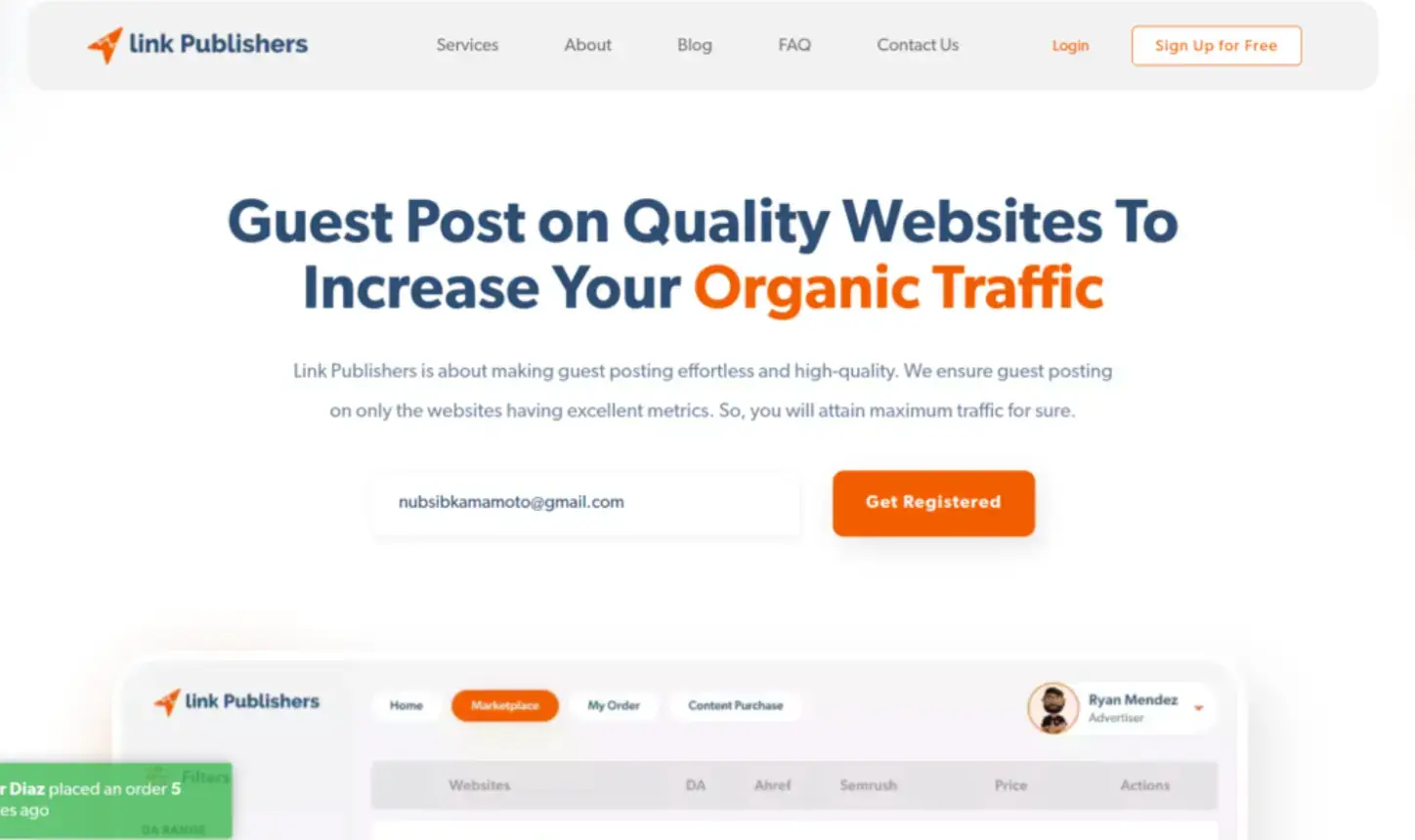Link Publishers is a budget-friendly backlink marketplace with a large catalog of blogs. The platform is especially strong in India, the US, and the UK.