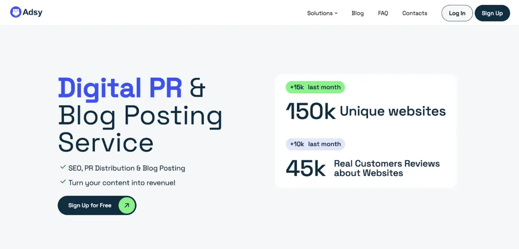 Adsy is a guest posting service that helps you get high-quality backlinks for SEO and digital PR. With guaranteed placements, escrow payments, vetted websites, and no hidden fees, it has become a popular choice for thousands of businesses and agencies.