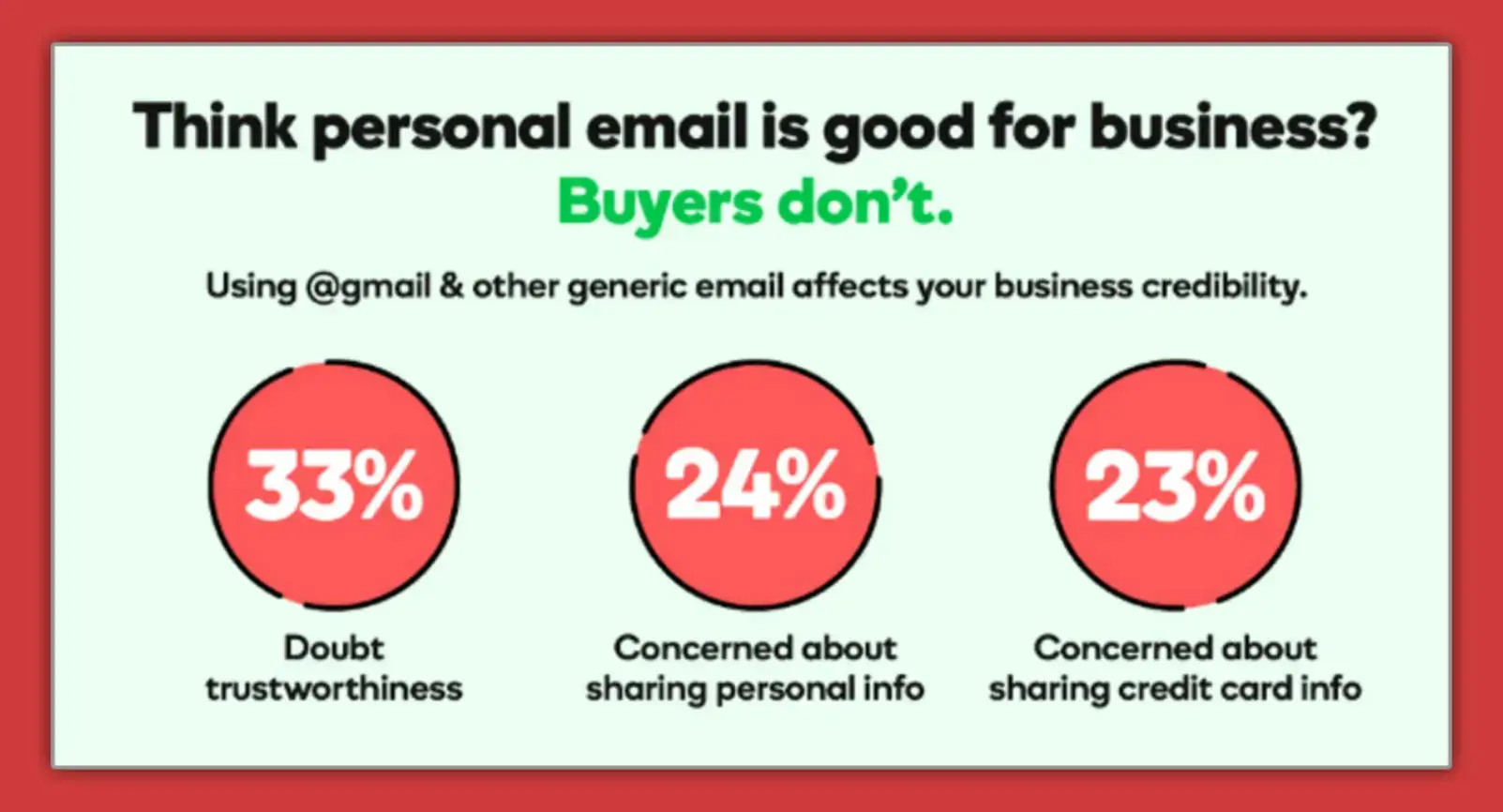 It might seem like a small detail, but sending business emails from yourbizzylady88@gmail.com is giving... side project, not serious business.