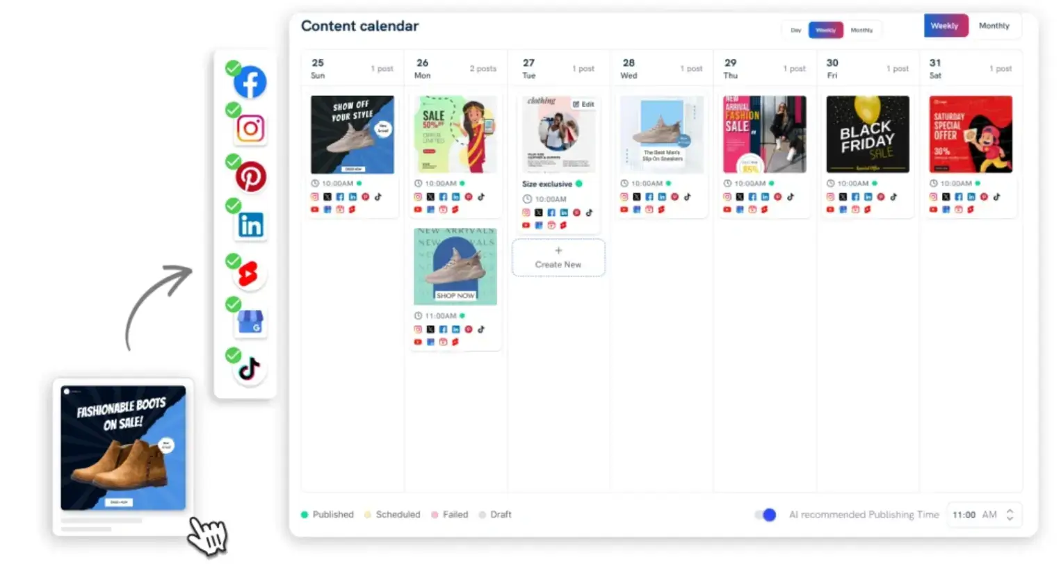 - Track analytics: Get detailed reports on post performance.