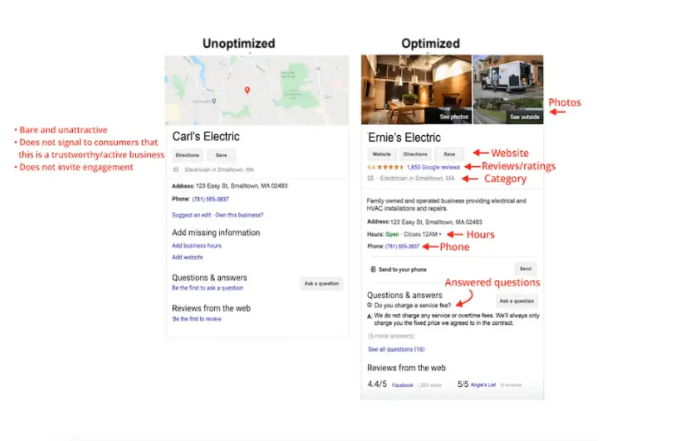 By Google's standards of how you should manage your Business Profile, maintaining a full profile, having current hours, photos, and a description of your services directly influences how your business is shown on Search and Maps.
