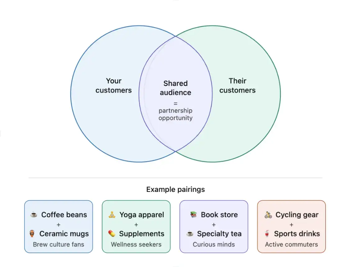 Start by identifying brands that serve the same audience but don't compete with you directly. Check which brands your social media followers also engage with, search niche hashtags on Instagram, browse local business directories, and look at who your customers already buy from. The best partners often aren't the biggest brands. They're the ones whose audience overlaps most with yours.