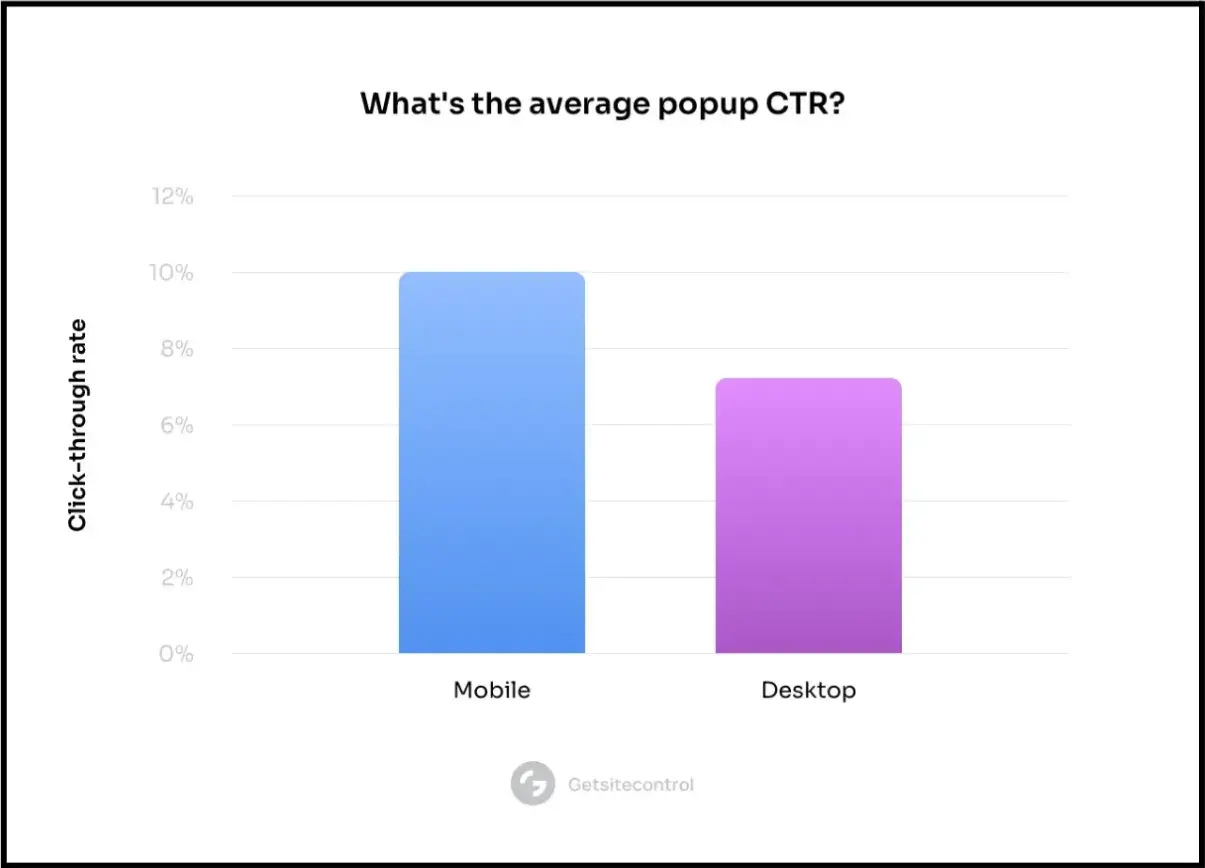 Studies show mobile‑focused popups can outperform desktop ones, with email CTAs converting up to 6.5% on mobile.