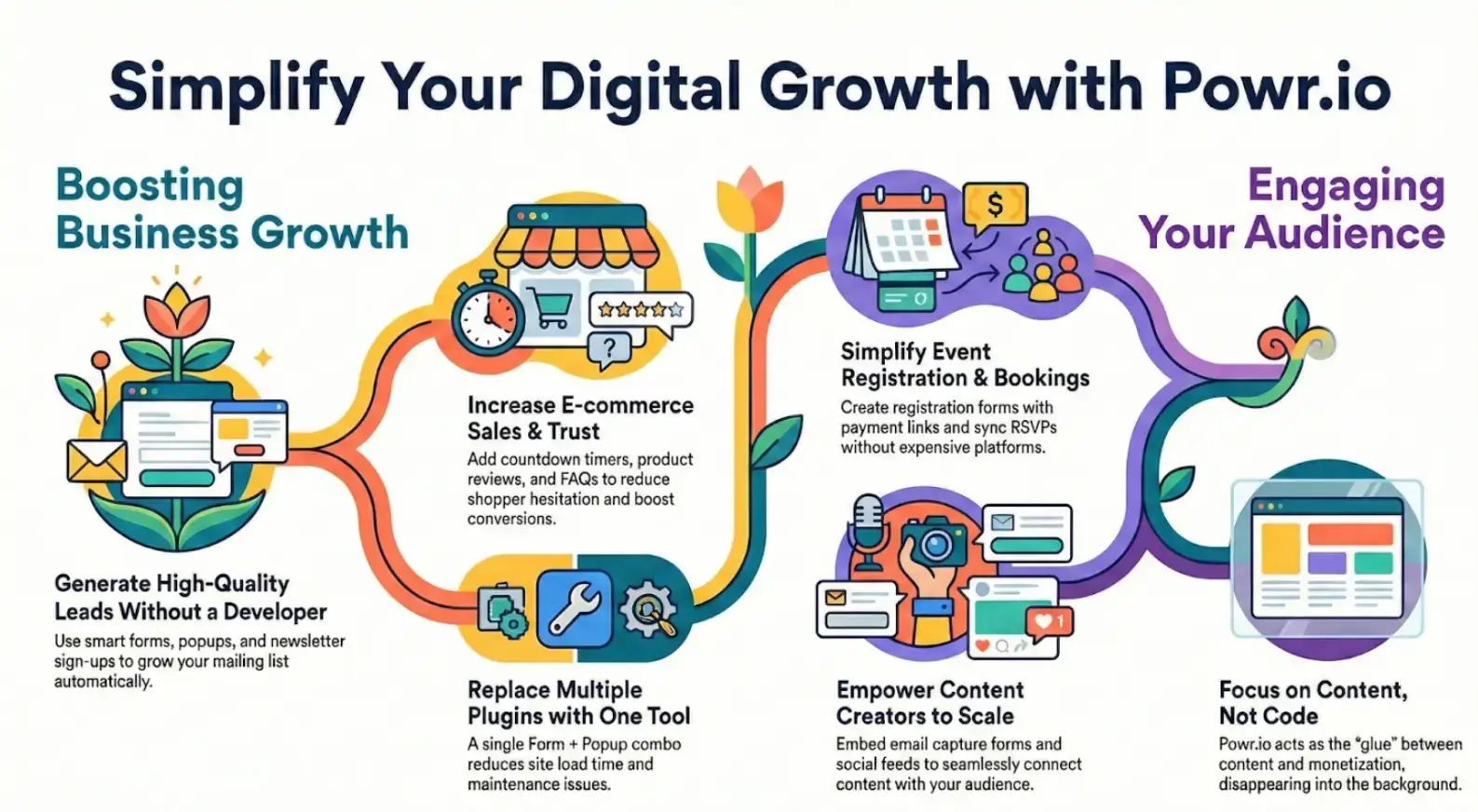 Additionally, POWR allows companies to do the following instead of installing ten different plugins from ten different vendors: