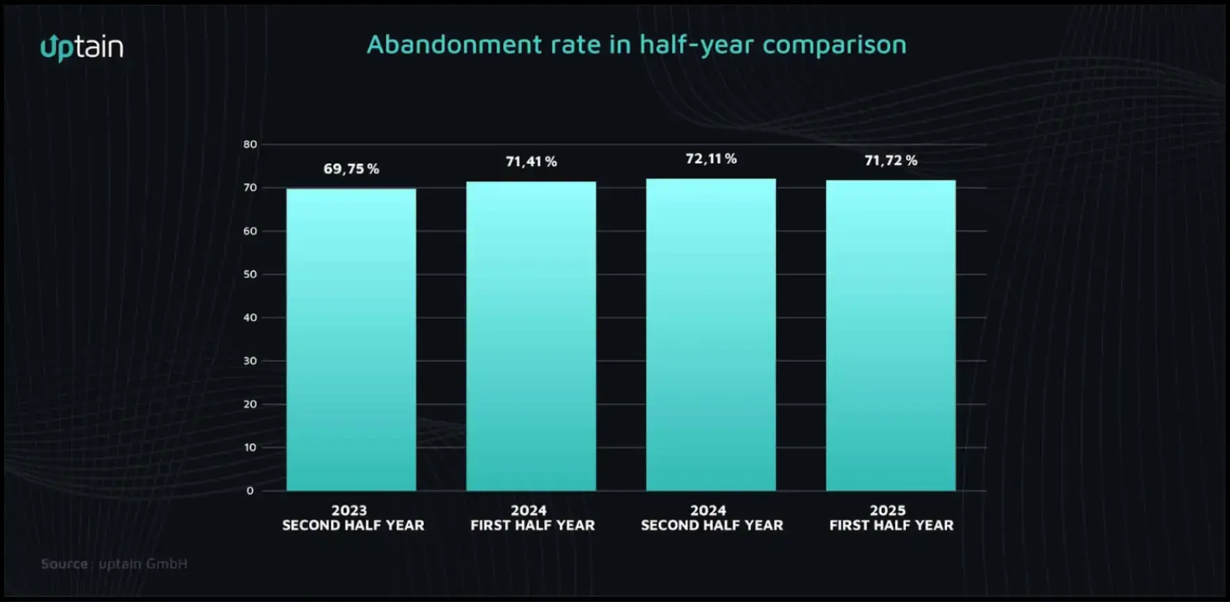 In the first half of 2025, 71.72% of shopping carts were abandoned, even though users had already shown clear buying intent.