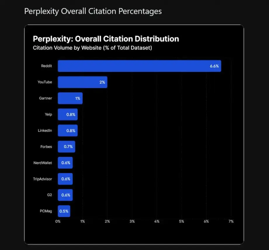 Perplexity, on the other hand, has different favorite sources, as you can see in the list below: